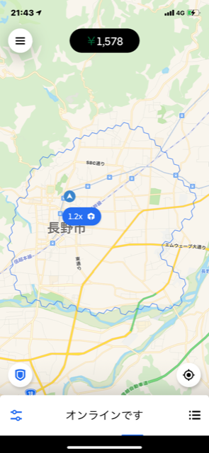 長野駅を中心に半径5kmの地域限定でのウーバーイーツ様のお仕事になります。